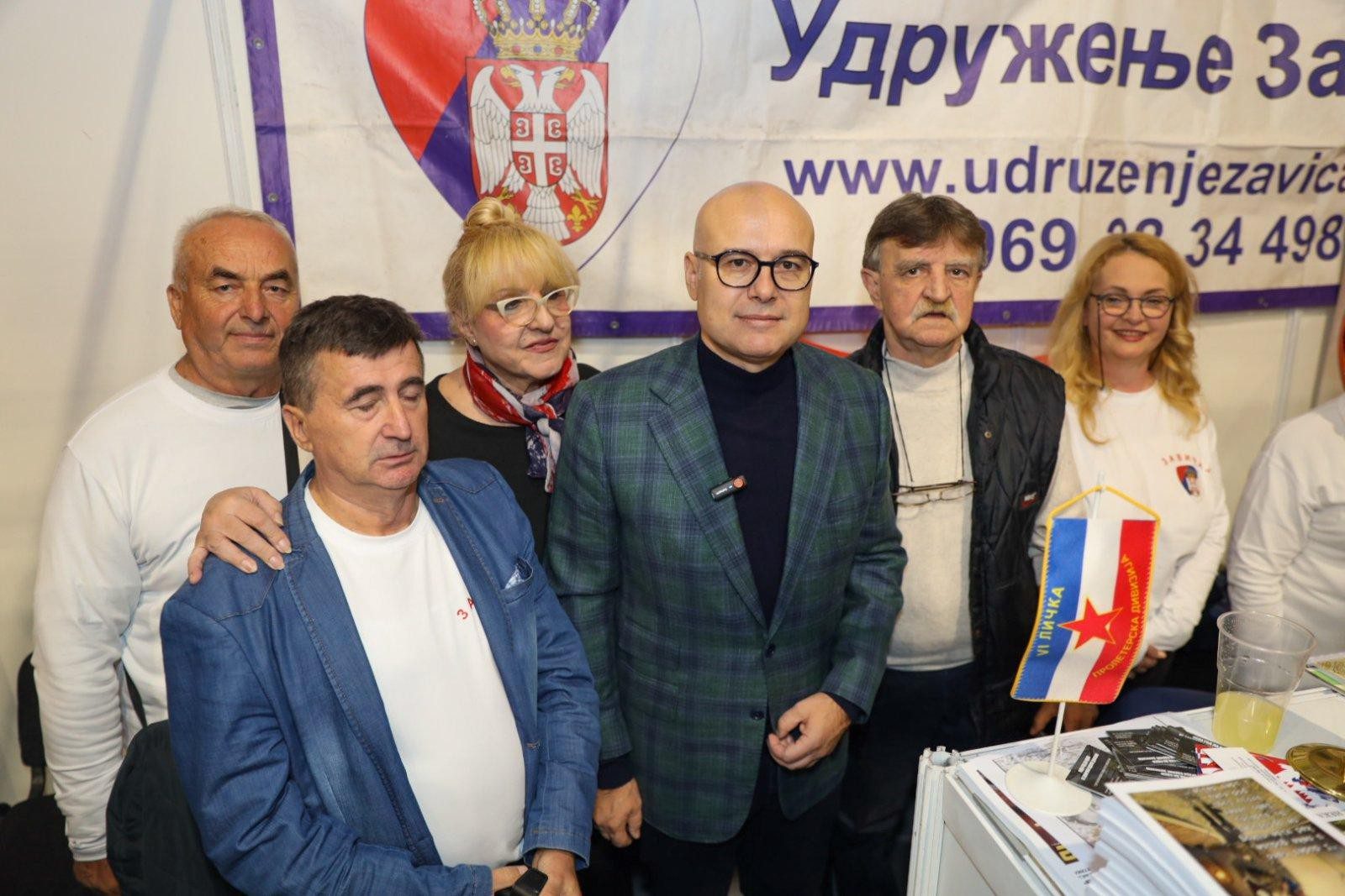 Милка Ј. Шолаја и Вељко Жигић, са МИЛОШЕМ ВУЧЕВИЋЕМ, председником СНС-а и НЕНАДОМ АБРАМОВИЋЕМ, председником Удружења „Завичај“ и другима