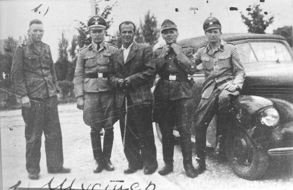 Заменик управника Бањичког логора, ЂОРЂЕ КОСМАЈАЦ (у средини),са нацистима у окупираном Београду