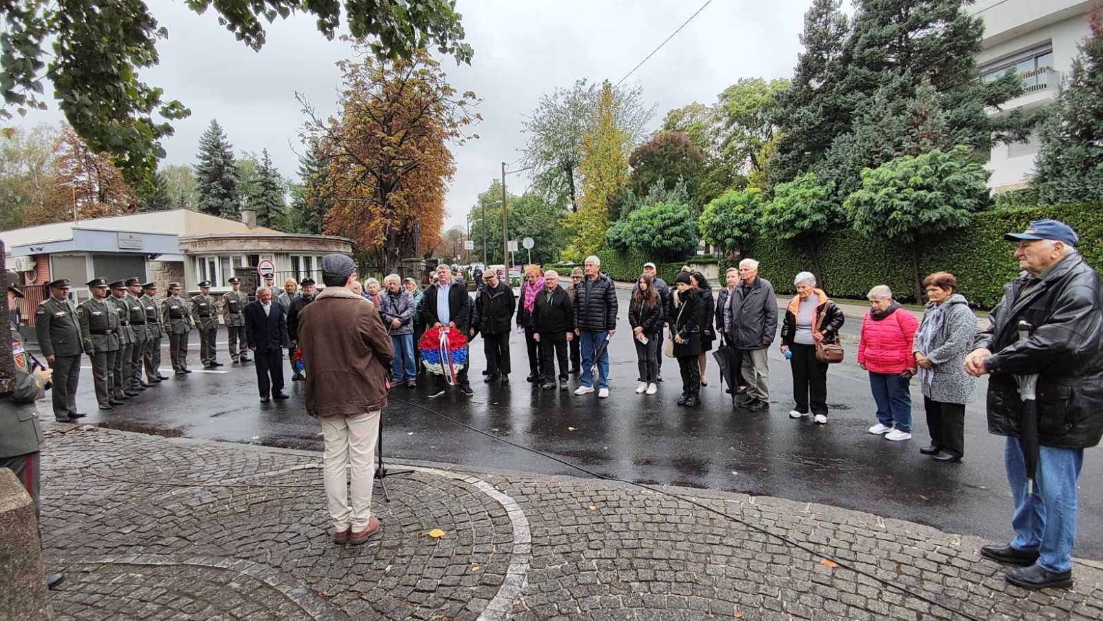 С лева, Б.Мосуровић, М.Бошњак и Н.Тодорић (иза је В.Гога), током церемоније полагања венаца и цвећа, као и одавања почасти