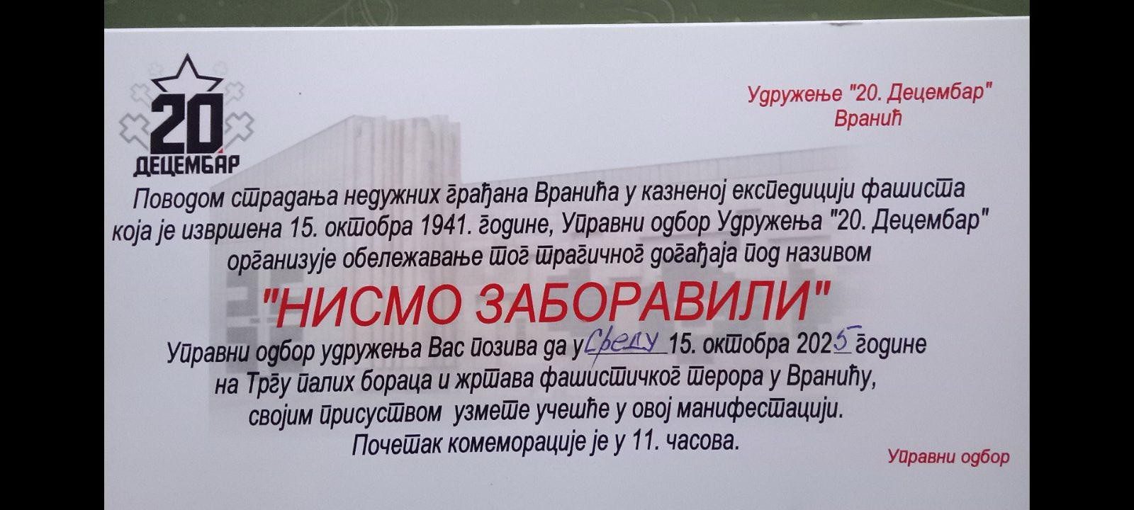 ПОЛОЖЕНИ ВЕНЦИ У ЗНАК СЕЋАЊА НА СТРАДАЛЕ МЕШТАНЕ ВРАНИЋА 15. ОКТОБРА 1941.