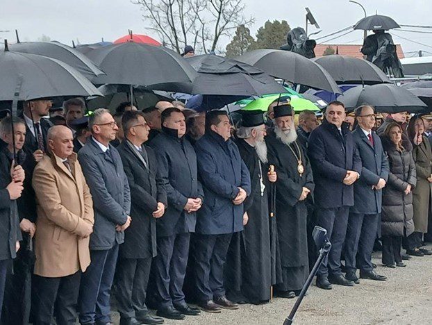 ДРЖАВНУ ЦЕРЕМОНИЈУ је предводио председник Владе Србије ЂУРО МАЦУТ, који је, заједно са председником Владе Републике Српске САВОМ МИНИЋЕМ, положио венце на споменик.
