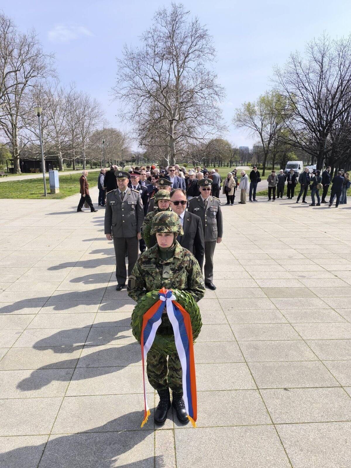 ФОРМИРАЊЕ КОЛОНЕ ПРИСУСТНИХ ПРЕДСТАВНИКА ИНСТИТУЦИЈА, ОРГАНА ВЛАСТИ,УДРУЖЕЊА И ДРУГИХ И ПОЧЕТАК ЦЕРЕМОНИЈЕ ПОЛАГАЊА ВЕНАЦА