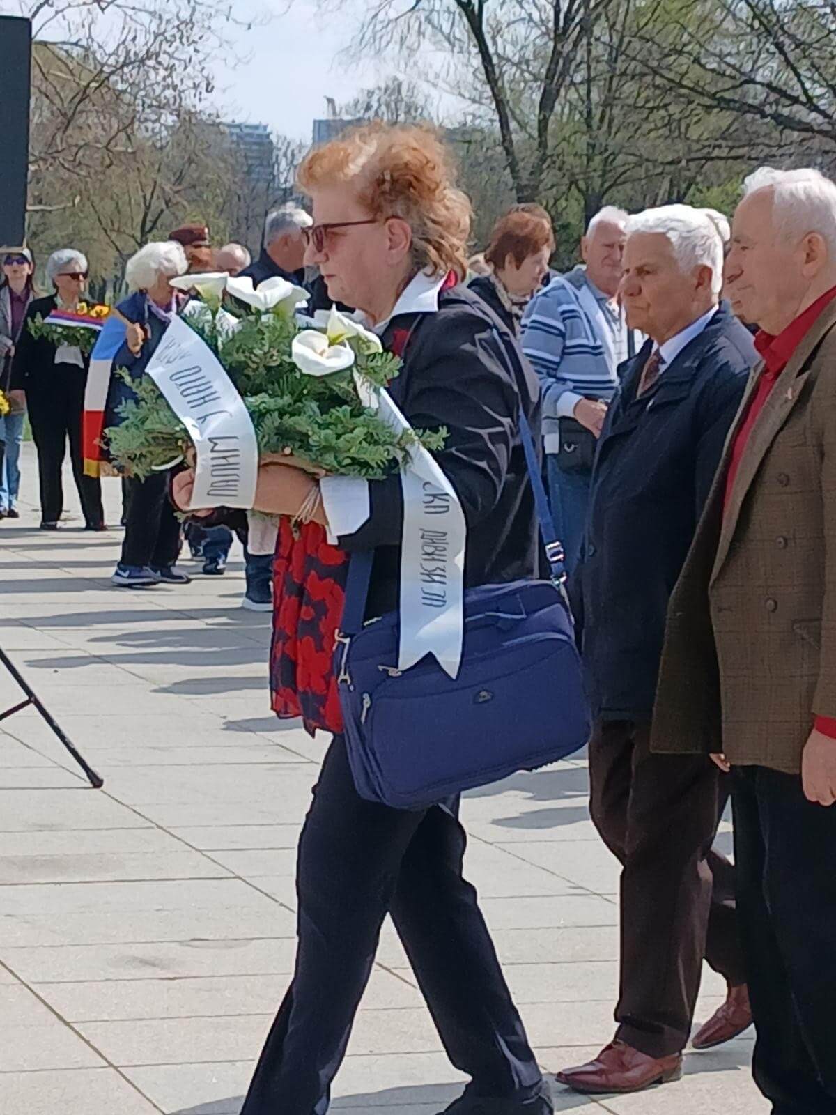(Доле, трећа с лева, када су представници Удружења, након положеног венца положили и руже